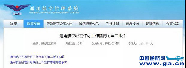 通用航空經營許可工作指南(第二版)》:運輸司將盡快啟用新版通航經營許可證電子證照