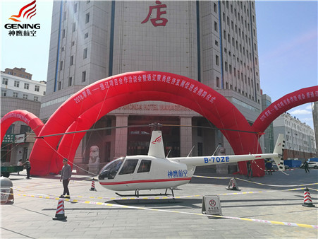 2018年9月6日,2018蒙商-通遼項目合作洽談會暨通遼蒙商經濟發展促進會揭牌儀式在內蒙古通遼市榮達酒店舉行。通遼市神鷹通用航空有限公司作為會員單位參加了此次活動。活動中,展示了公司自主研發的先鋒一號無人機和新引進的美國羅賓遜R44直升機,受到了與會領導與嘉賓的一致好評