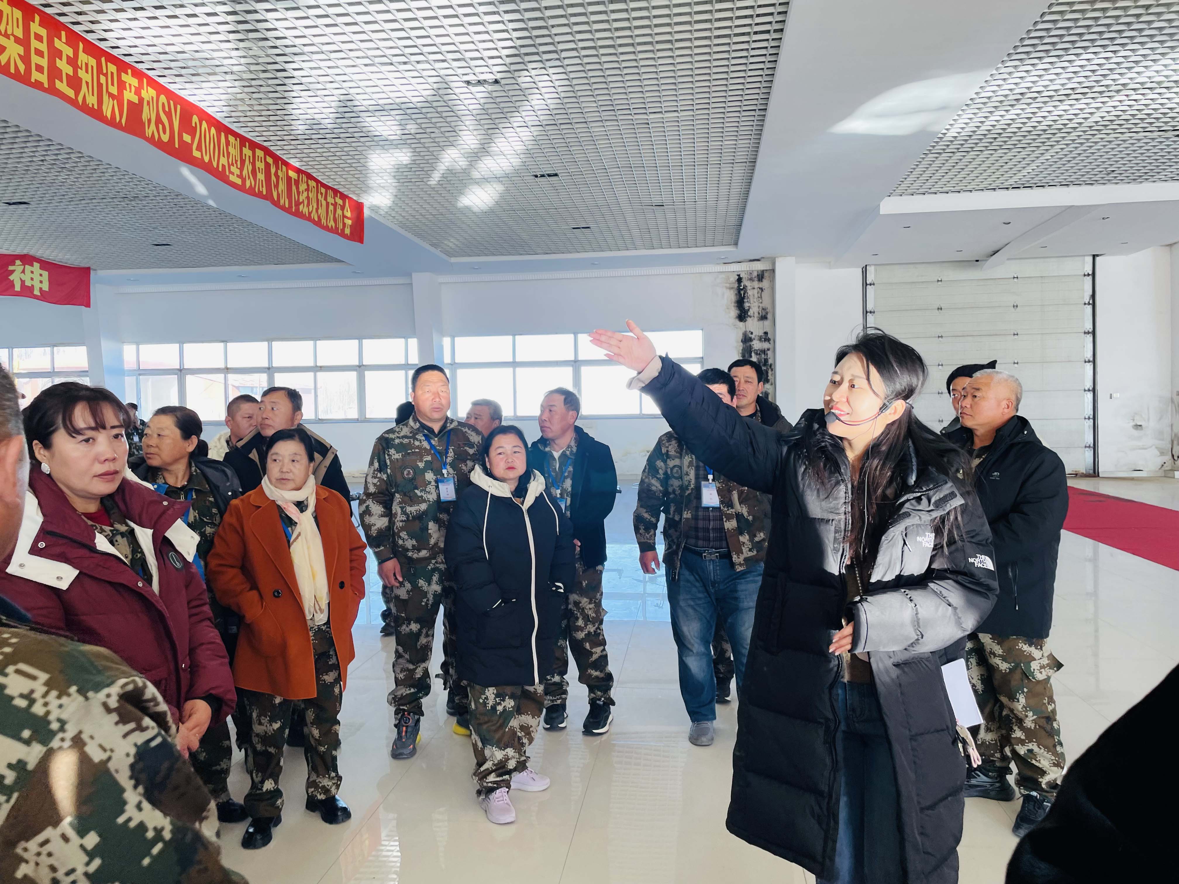 活動當天,來自科左中旗各鄉鎮的50余名農牧民學員齊聚內蒙古神鷹飛機制造有限公司,開啟了他們的“科技之旅”。在公司機務工程部王路的帶領下,學員們首先參觀了飛機展廳,詳細了解了AC311飛機以及公司自主研發的“SY-200”農用飛機、神鷹植保無人機的相關工作原理及用途。王路結合實際案例,生動講解了飛機在農作物播種、施肥、病蟲害防治等方面的應用優勢,讓學員們深刻認識到現代農業科技帶來的巨大變革。